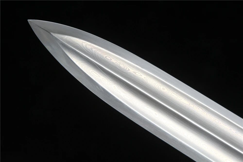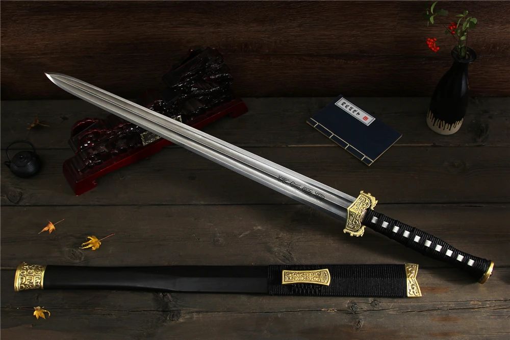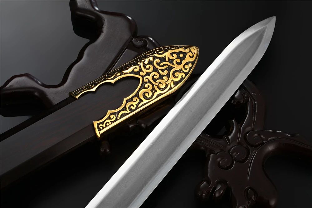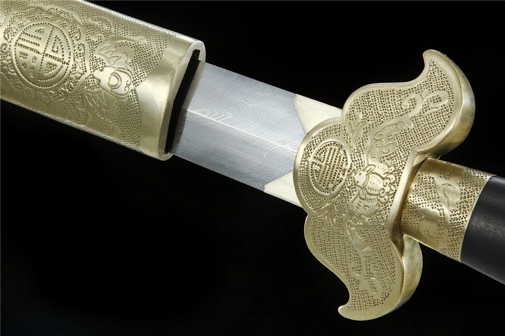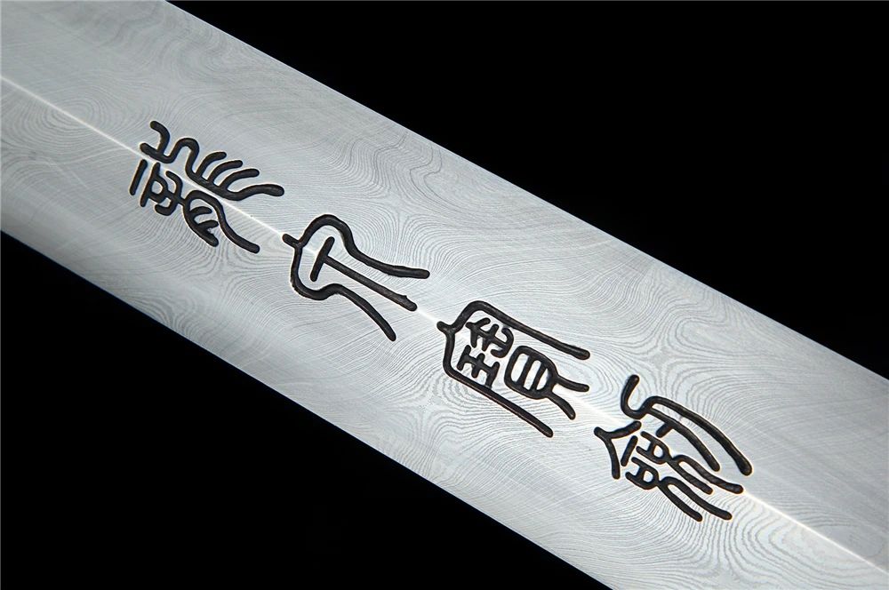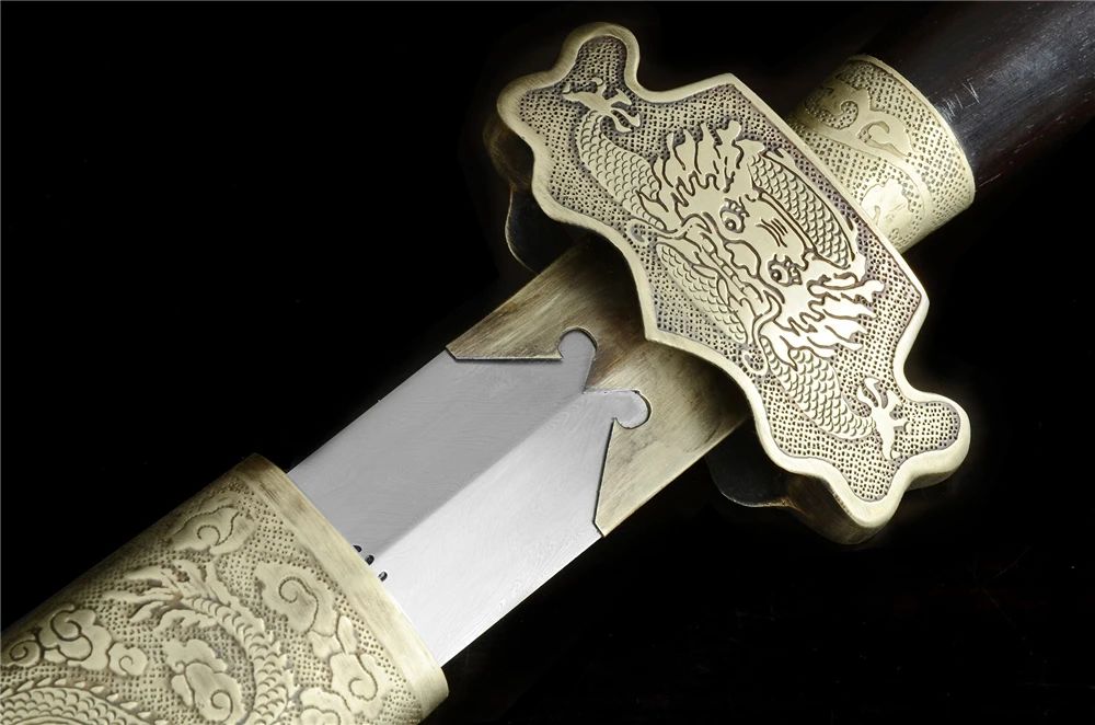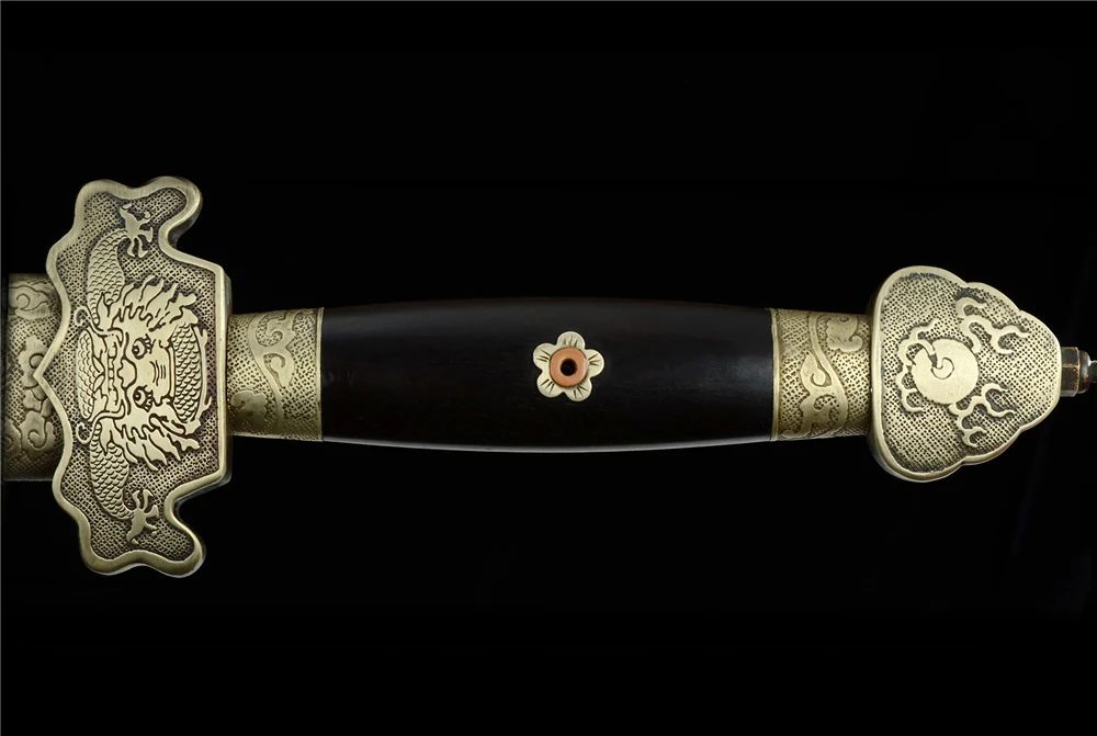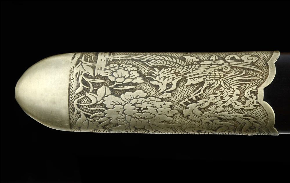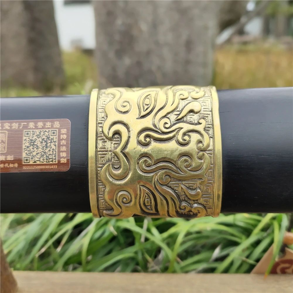 此款寶劍,龍泉寶劍廠引用清劍形制,鍛造一堆寶劍,以白銅刻畫紋飾,均為百煉鋼鍛造,一為羽毛紋,一為璇打紋,做工極為精湛!