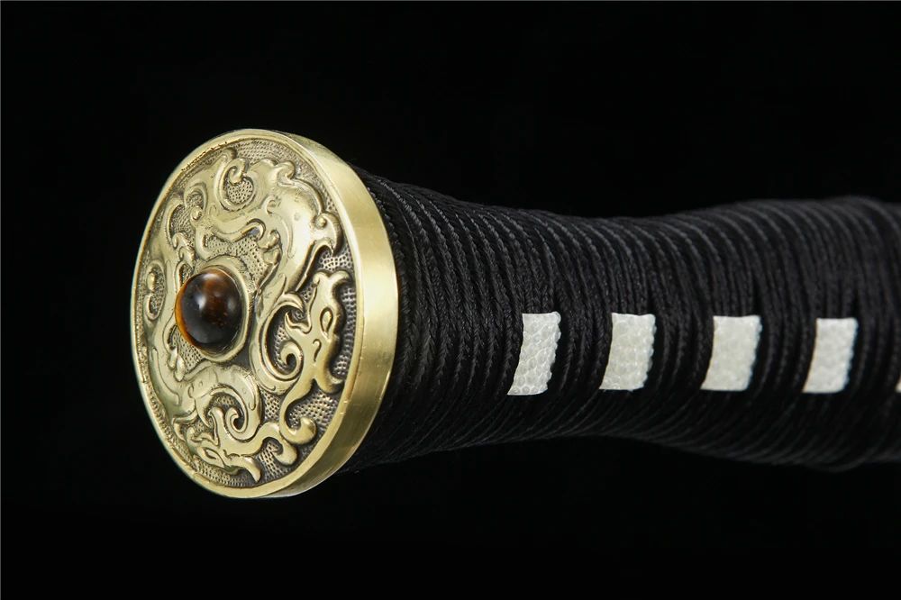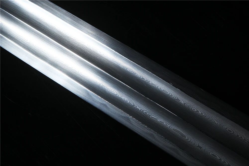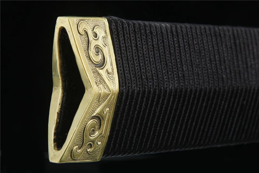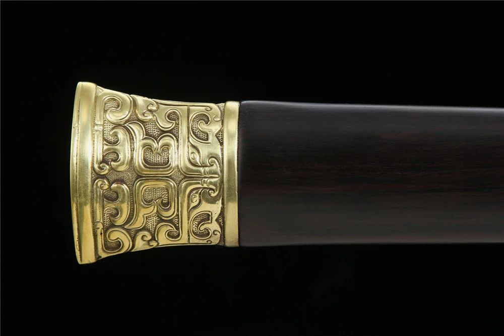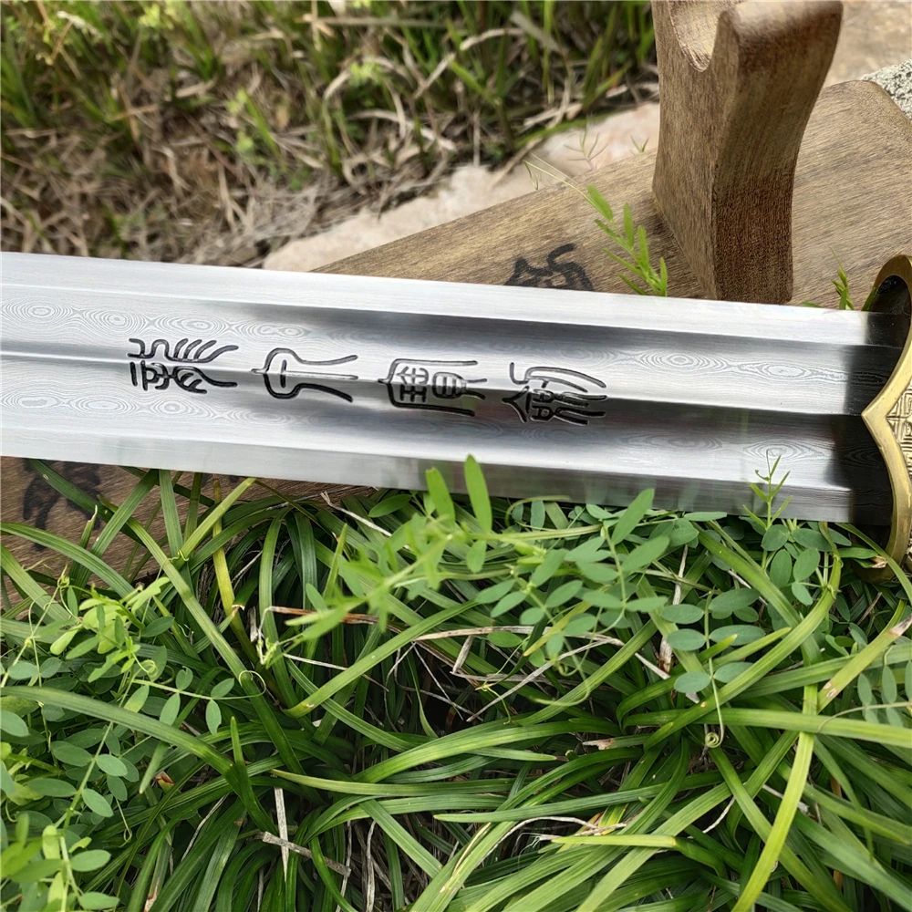 此款承影寶劍,以戰(zhàn)國風形制鍛造,百煉鋼雙槽劍身,古法覆土燒刃,以黃銅雕刻一體劍柄,寬刃精研,十分霸氣!