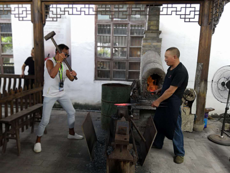 基地以豐富的龍泉寶劍歷史文化資源為依托,開展有針對性的科普活動。通過參與寶劍鍛打工序,可以讓客人了解到鋼材的區(qū)分,鋼材怎樣鍛制成長形劍條,精美的劍身花紋從何而來;體驗一次角色扮演的樂趣,從中可以明白鑄劍師徒默契配合的重要性……另外還設置了射箭比賽、劍術表演等體驗區(qū)域,充分展示龍泉寶劍精湛的制作工藝,領略龍泉寶劍的無窮魅力。