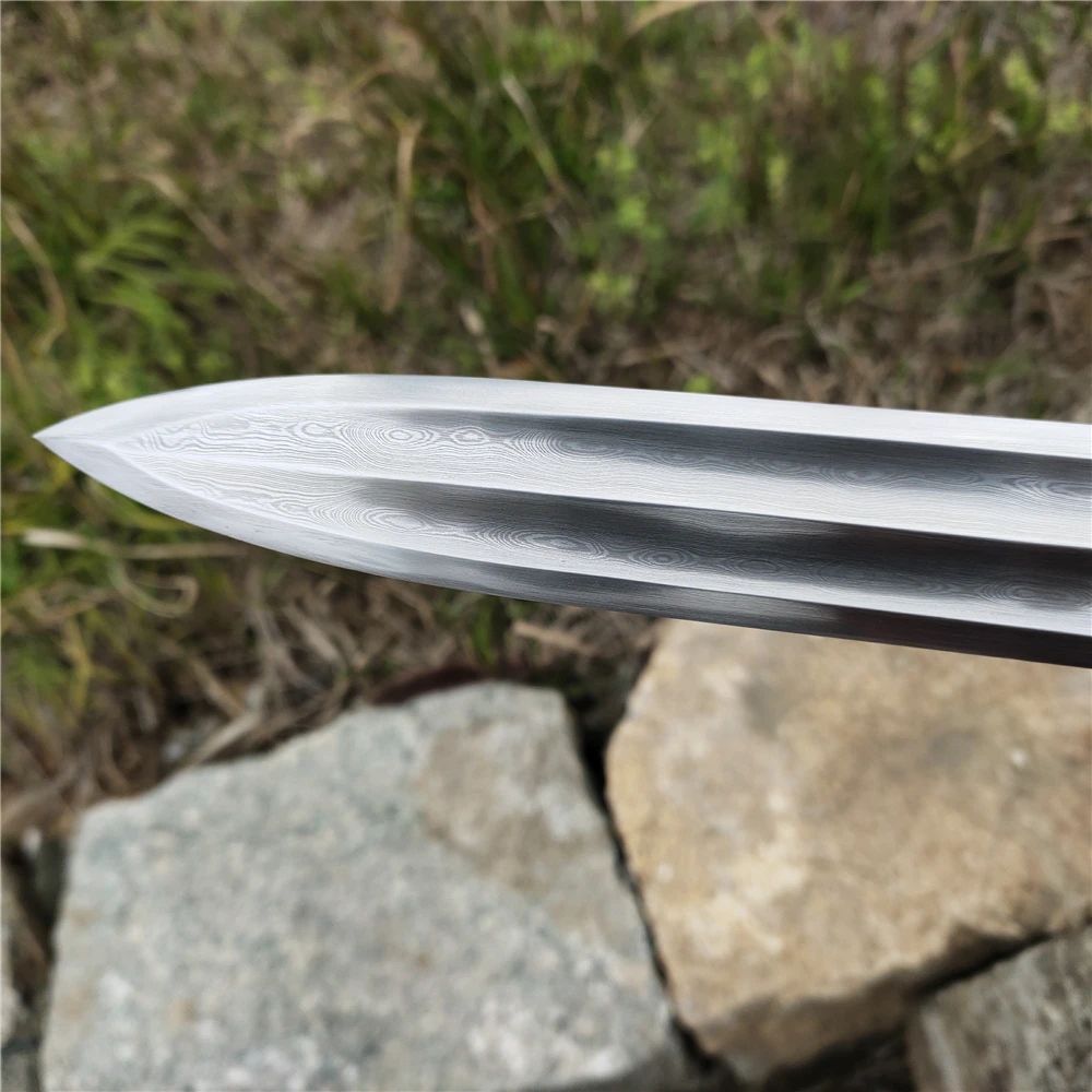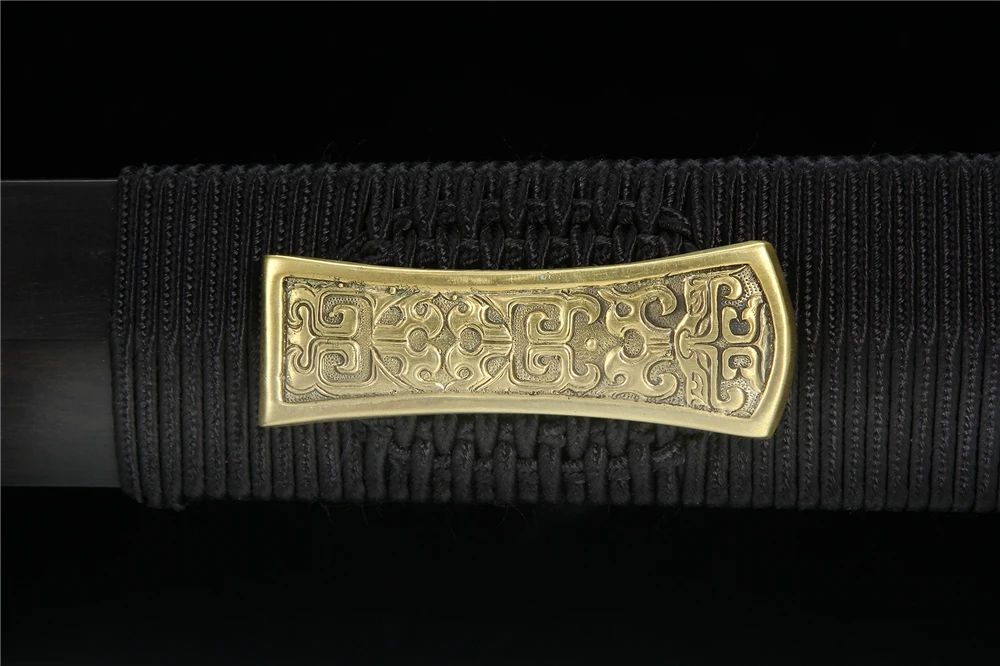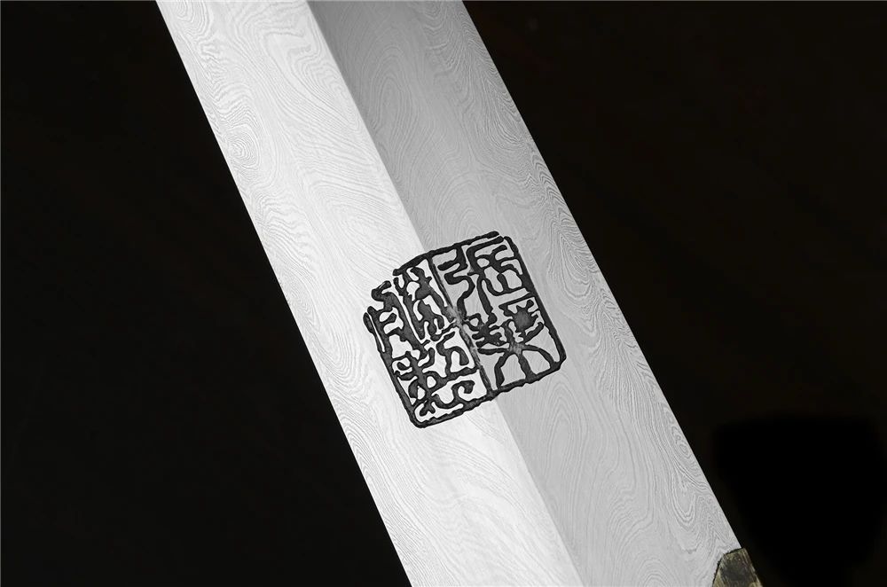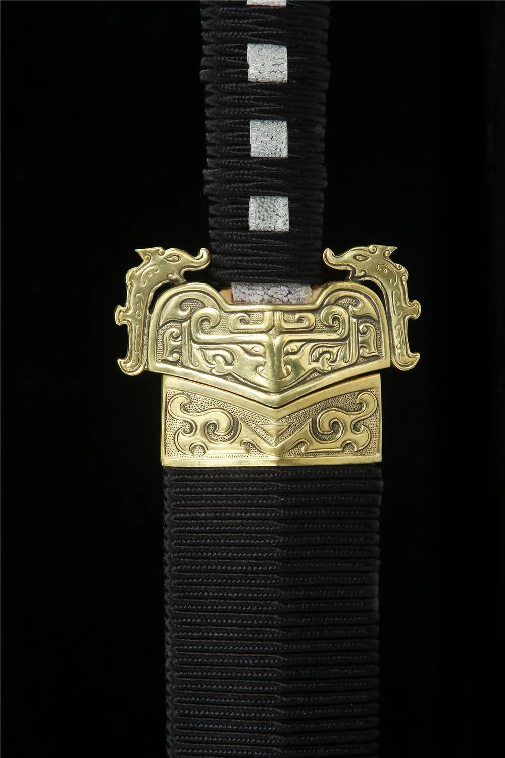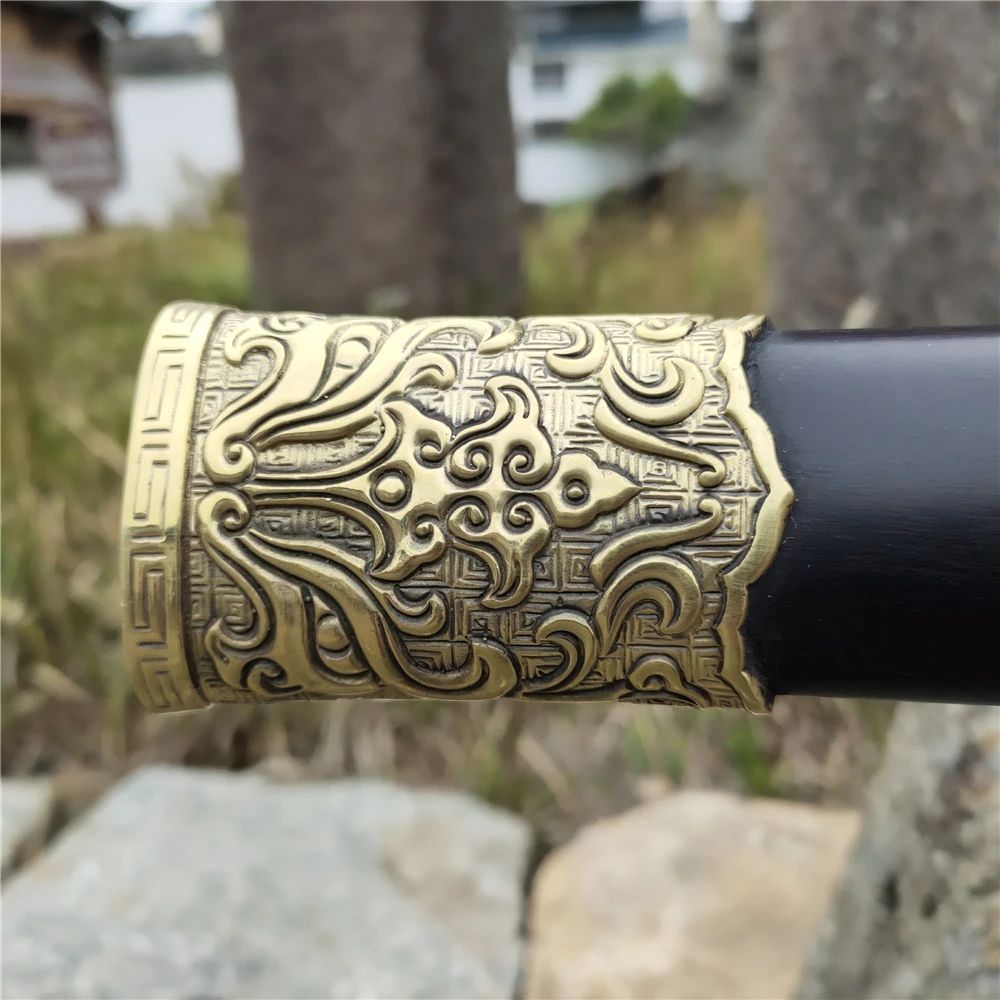此款承影寶劍,以戰(zhàn)國風形制鍛造,百煉鋼雙槽劍身,古法覆土燒刃,以黃銅雕刻一體劍柄,寬刃精研,十分霸氣!