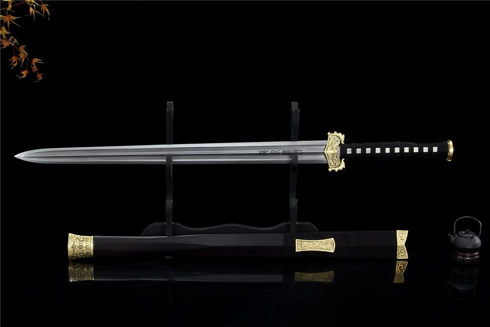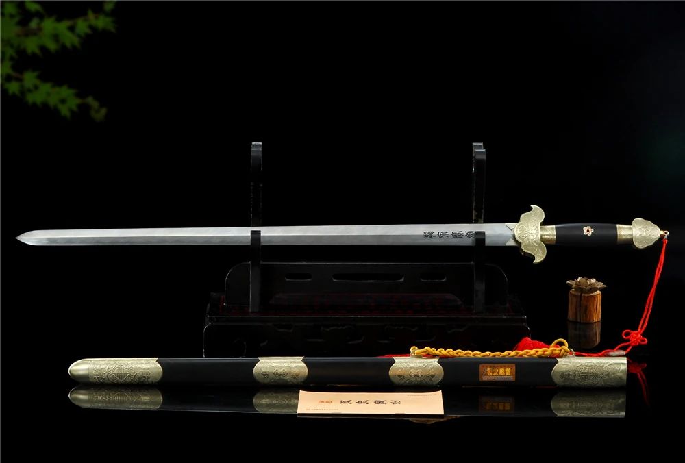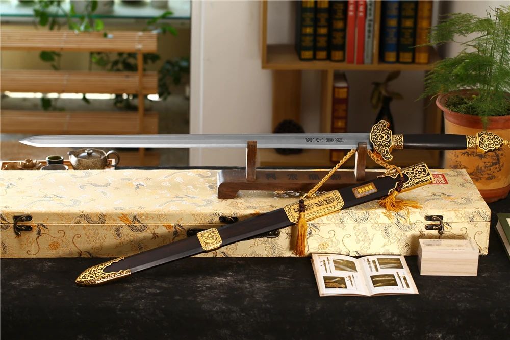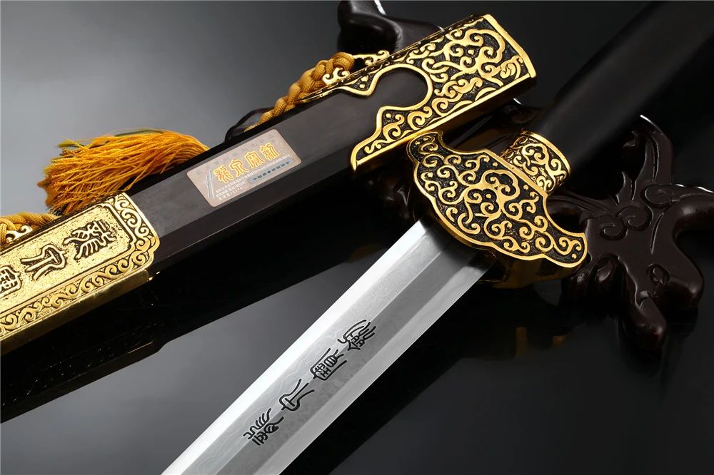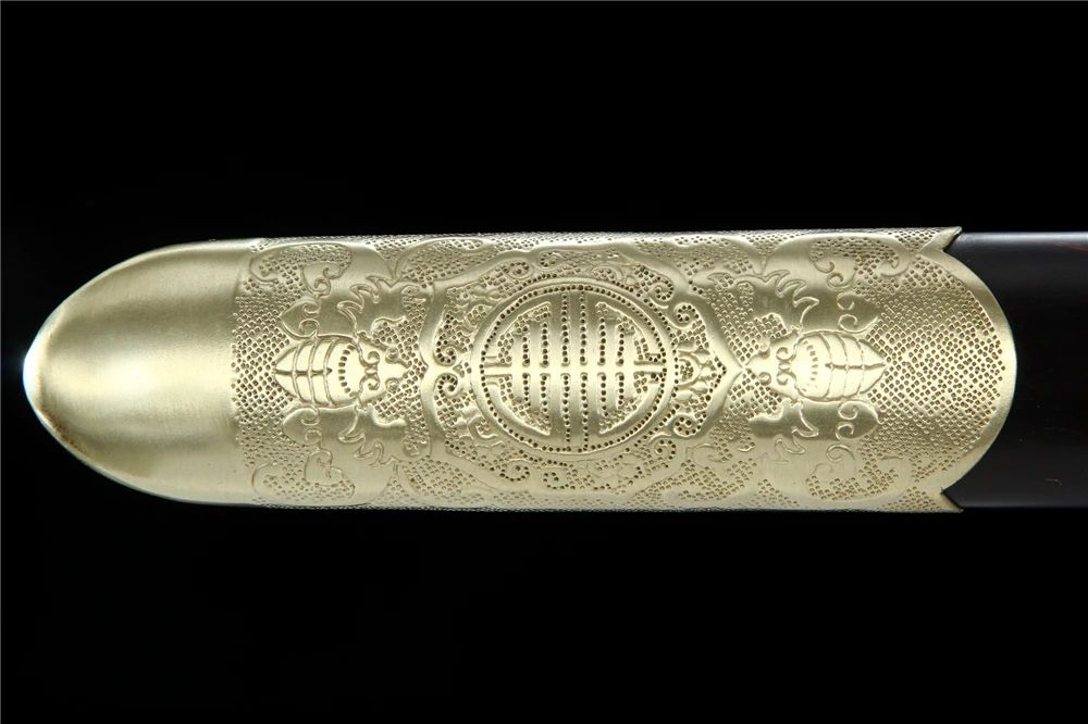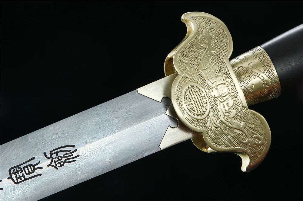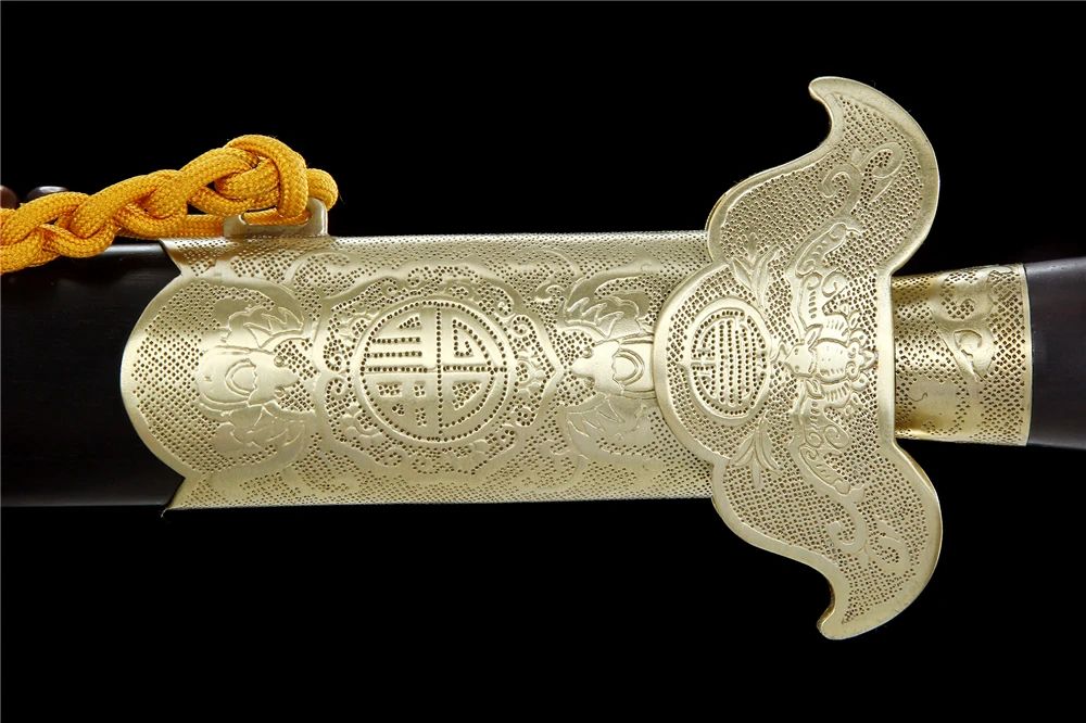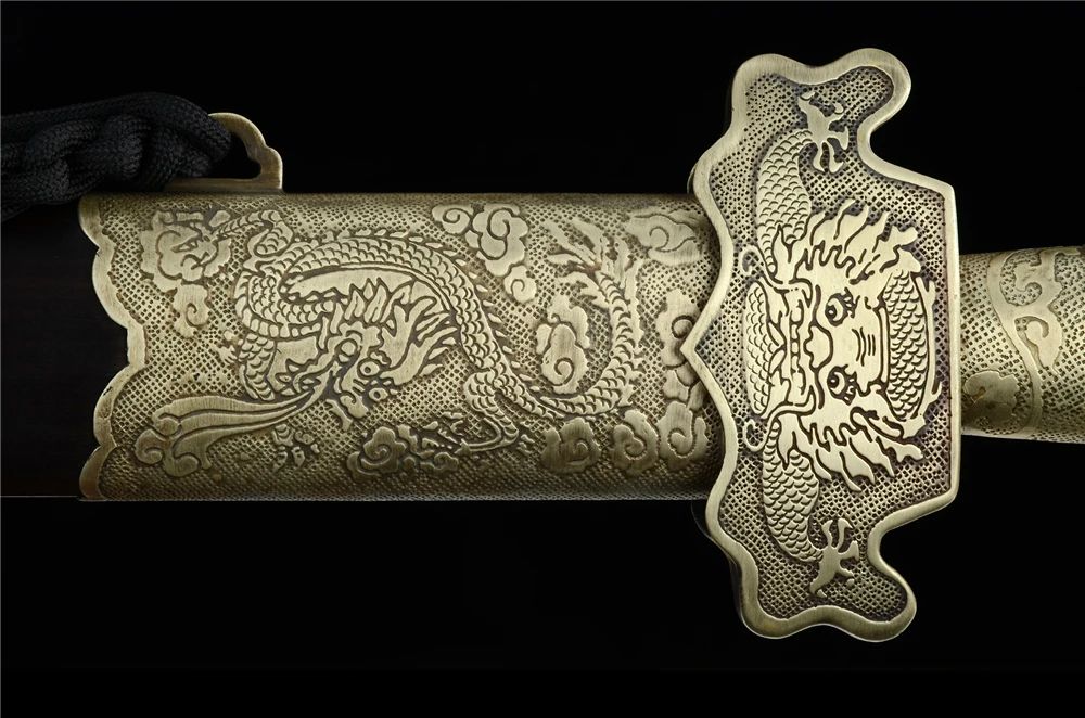 此款寶劍,龍泉寶劍廠引用清劍形制,鍛造一堆寶劍,以白銅刻畫紋飾,均為百煉鋼鍛造,一為羽毛紋,一為璇打紋,做工極為精湛!